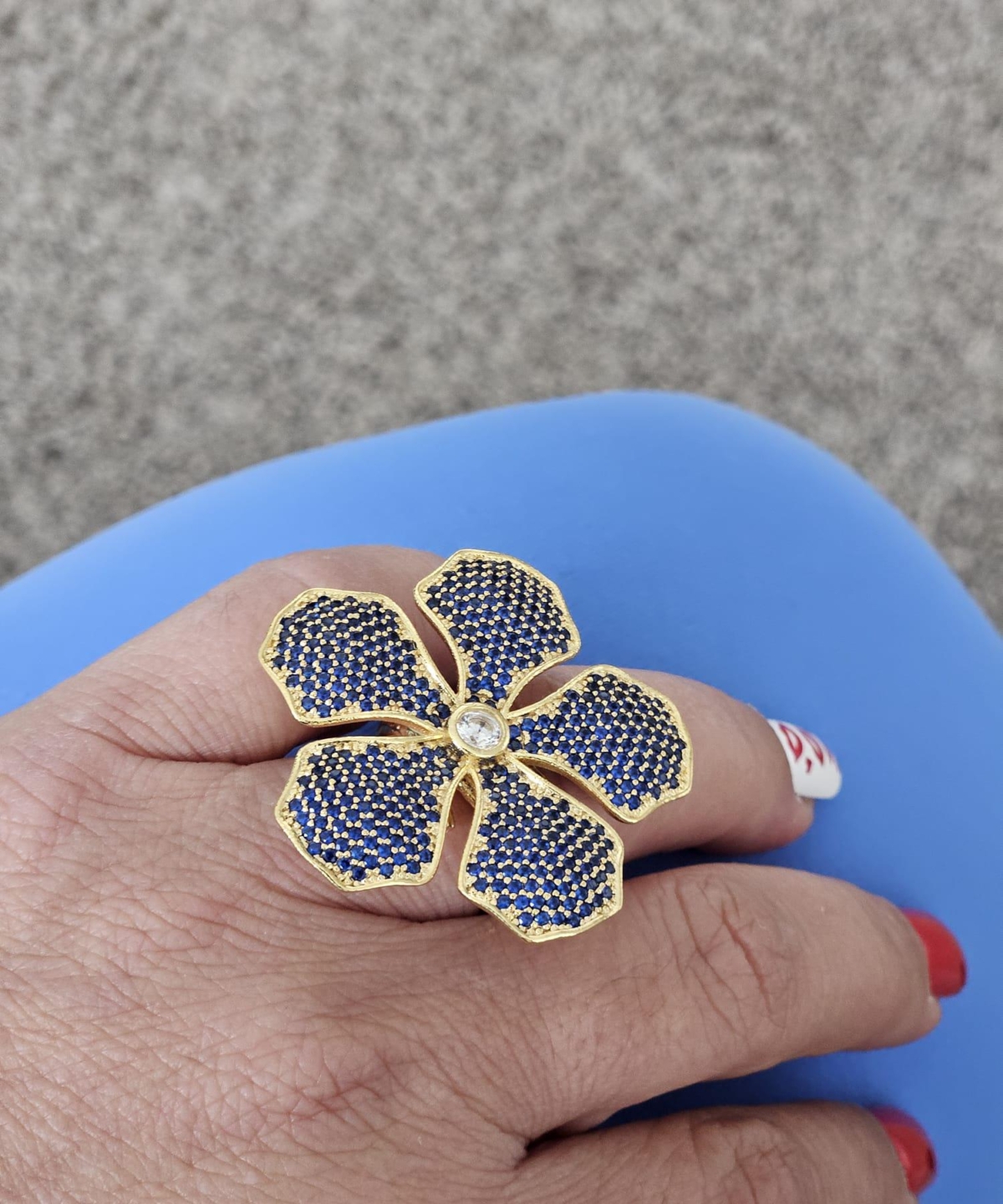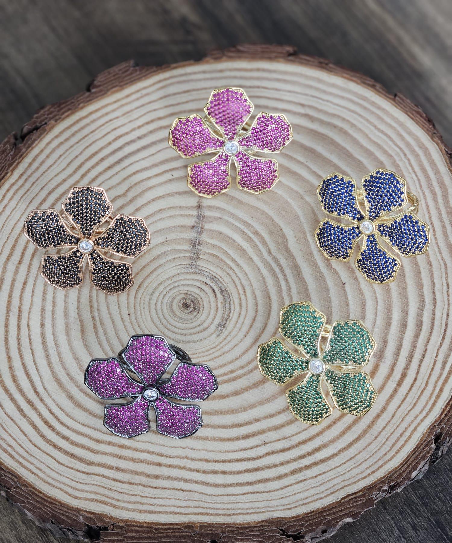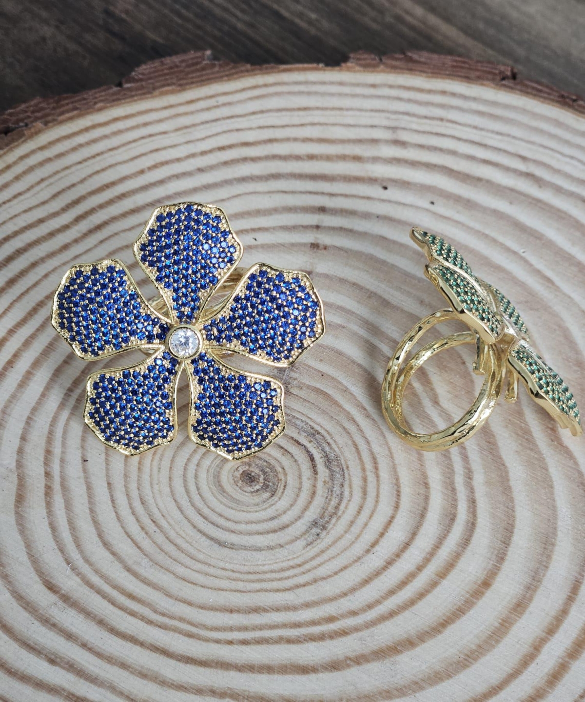Embrace charm and sophistication with this 22K gold-plated bronze clover ring, adorned with sparkling zircon stones in navy blue and pink. Perfectly blending Turkish artistry with modern design, this ring is a radiant addition to any jewelry collection.