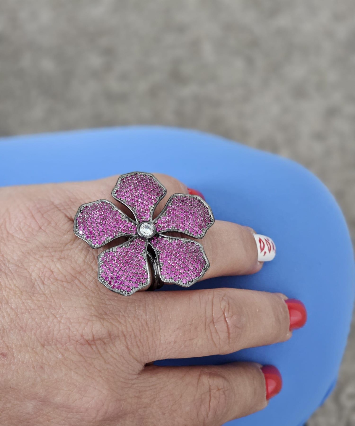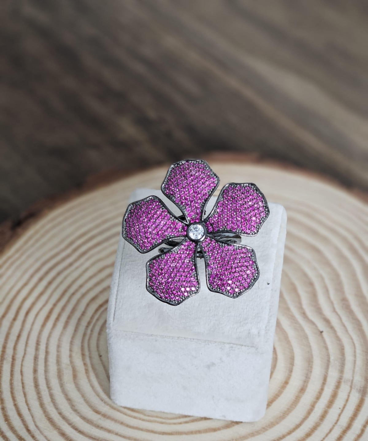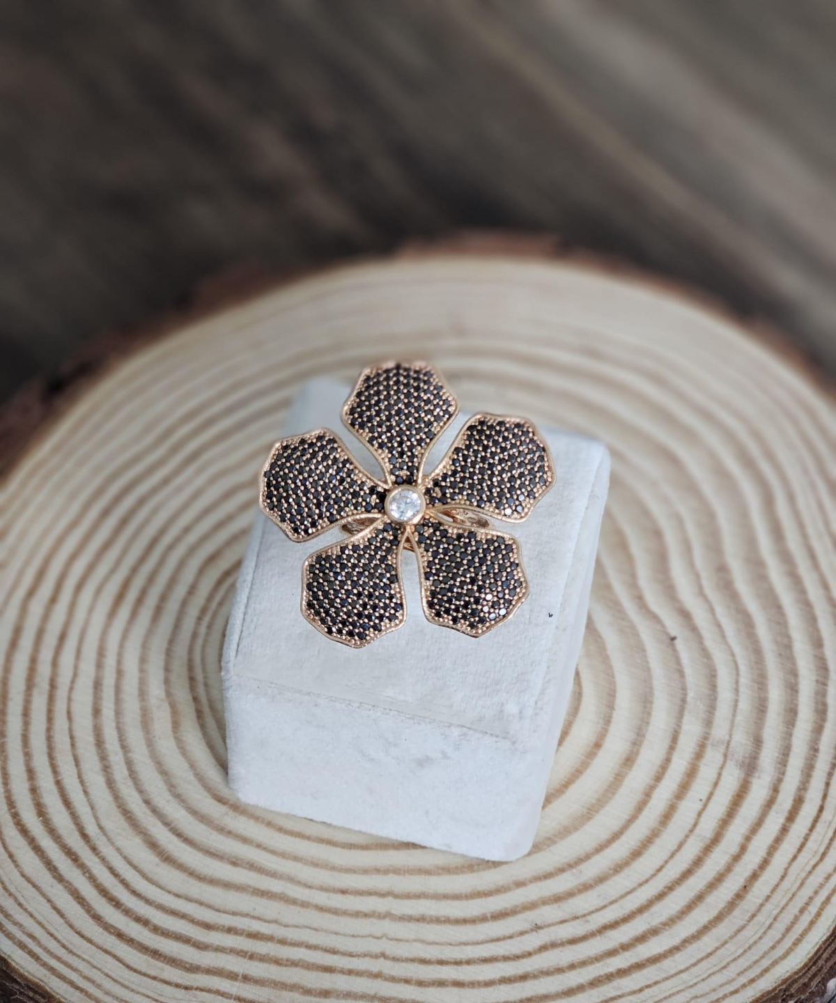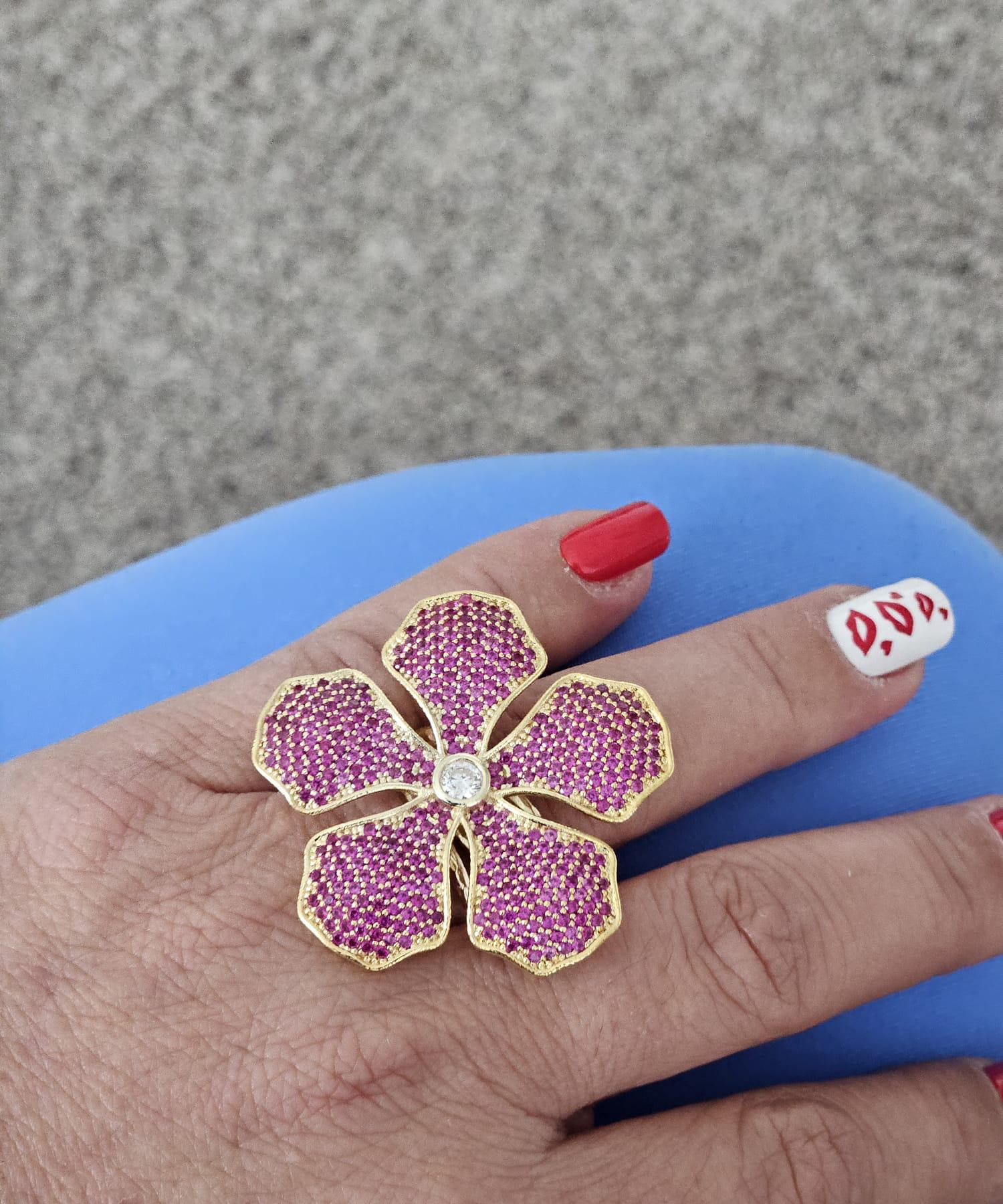 Embrace charm and sophistication with this 22K gold-plated bronze clover ring, adorned with sparkling zircon stones in navy blue and pink. Perfectly blending Turkish artistry with modern design, this ring is a radiant addition to any jewelry collection.