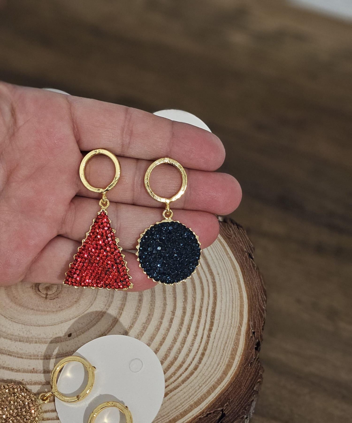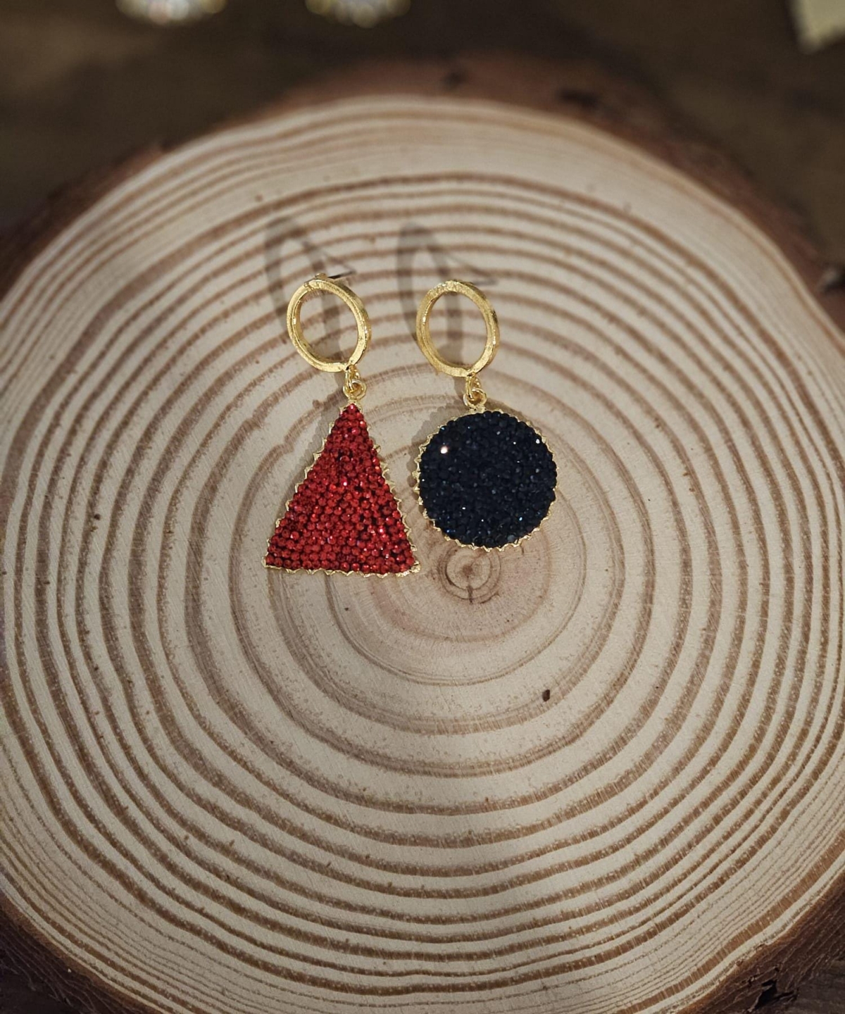 Elevate your accessory game with these exquisite 22K gold-plated bronze earrings, adorned with multi-colored marcasite stones. Handmade by skilled Turkish artisans, these earrings are available in triangle or round shapes, allowing you to choose the perfect style for your look.