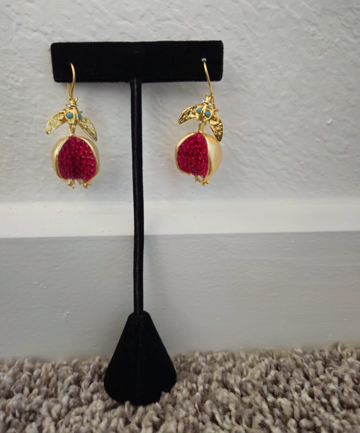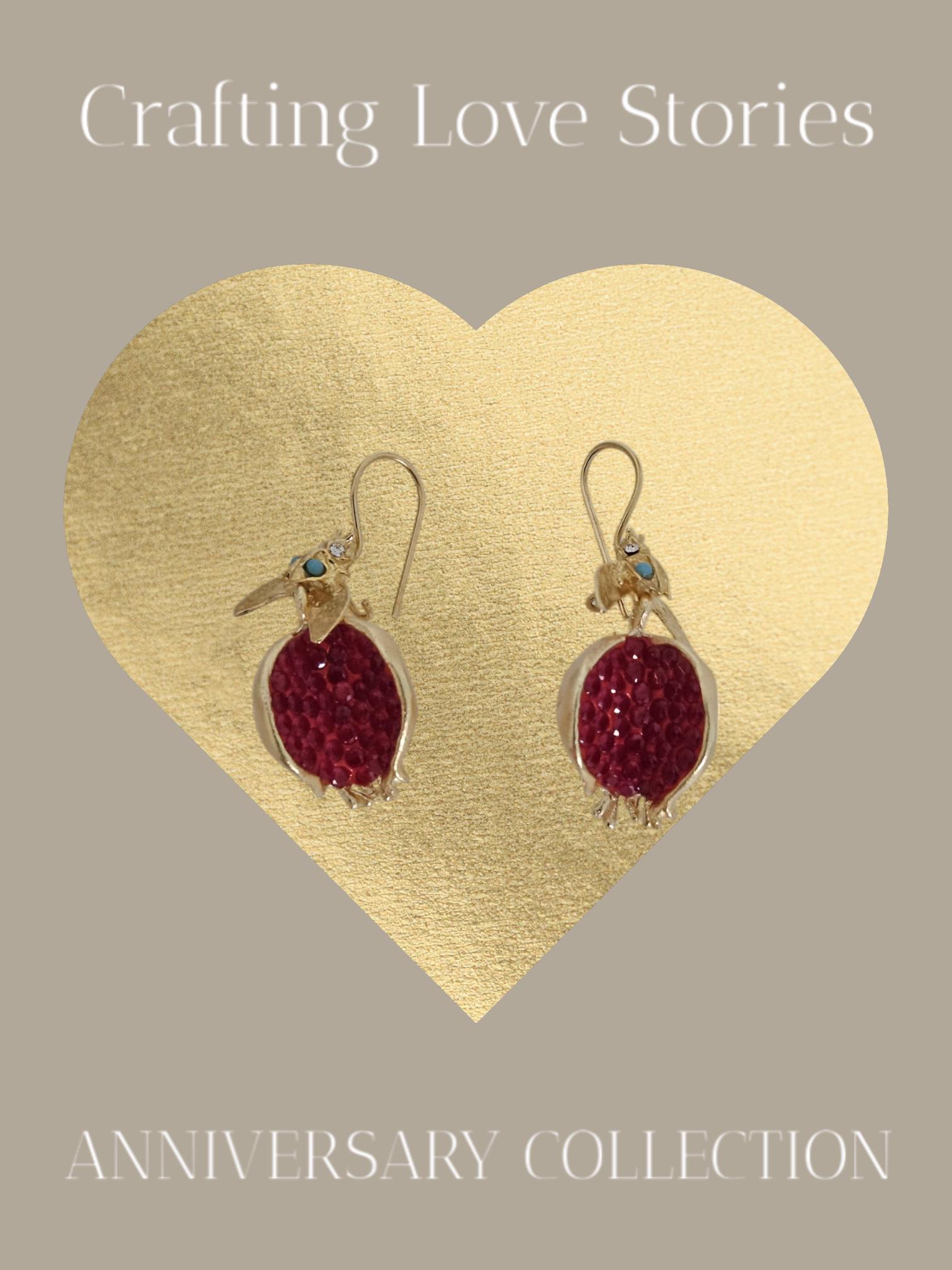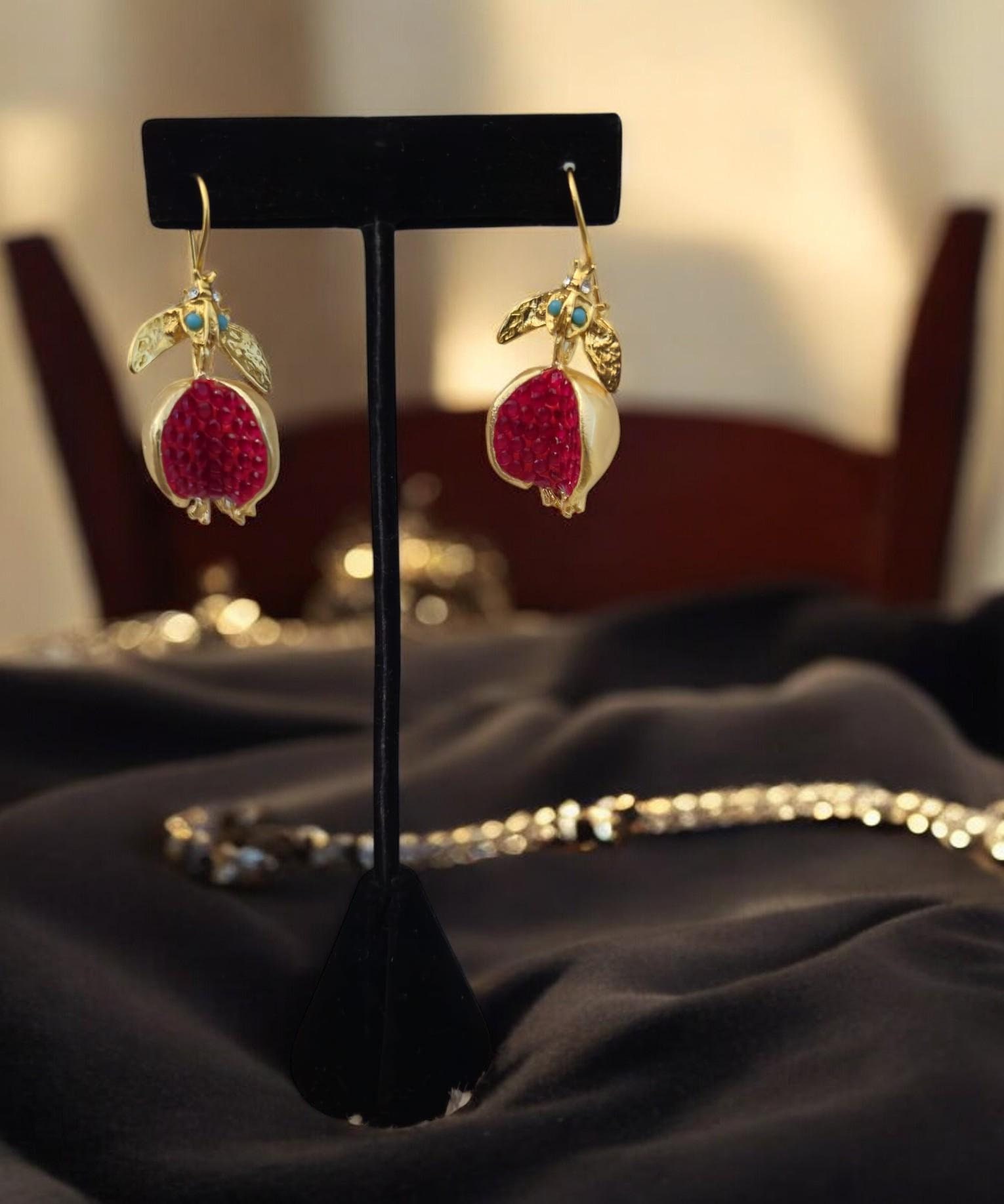 Pomegranate earrings can feature realistic detailing, including open pomegranate designs with seed motifs or abstract interpretations. Bronze provides a sturdy base, while gold plating adds warmth and richness.