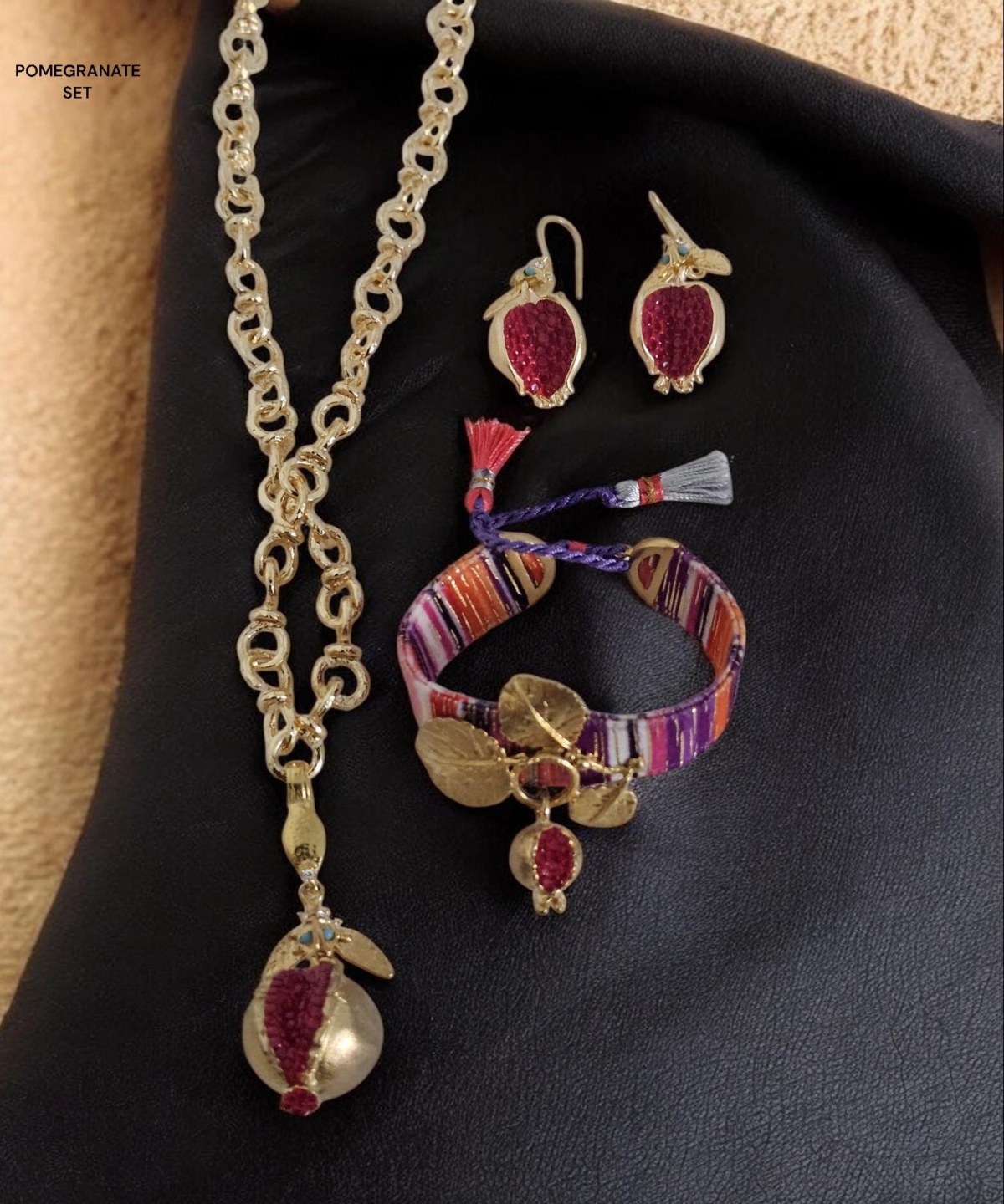 A pomegranate-themed jewelry set bracelet,necklace,and earrings combines elegance with symbolic depth,representing abundance,and love.