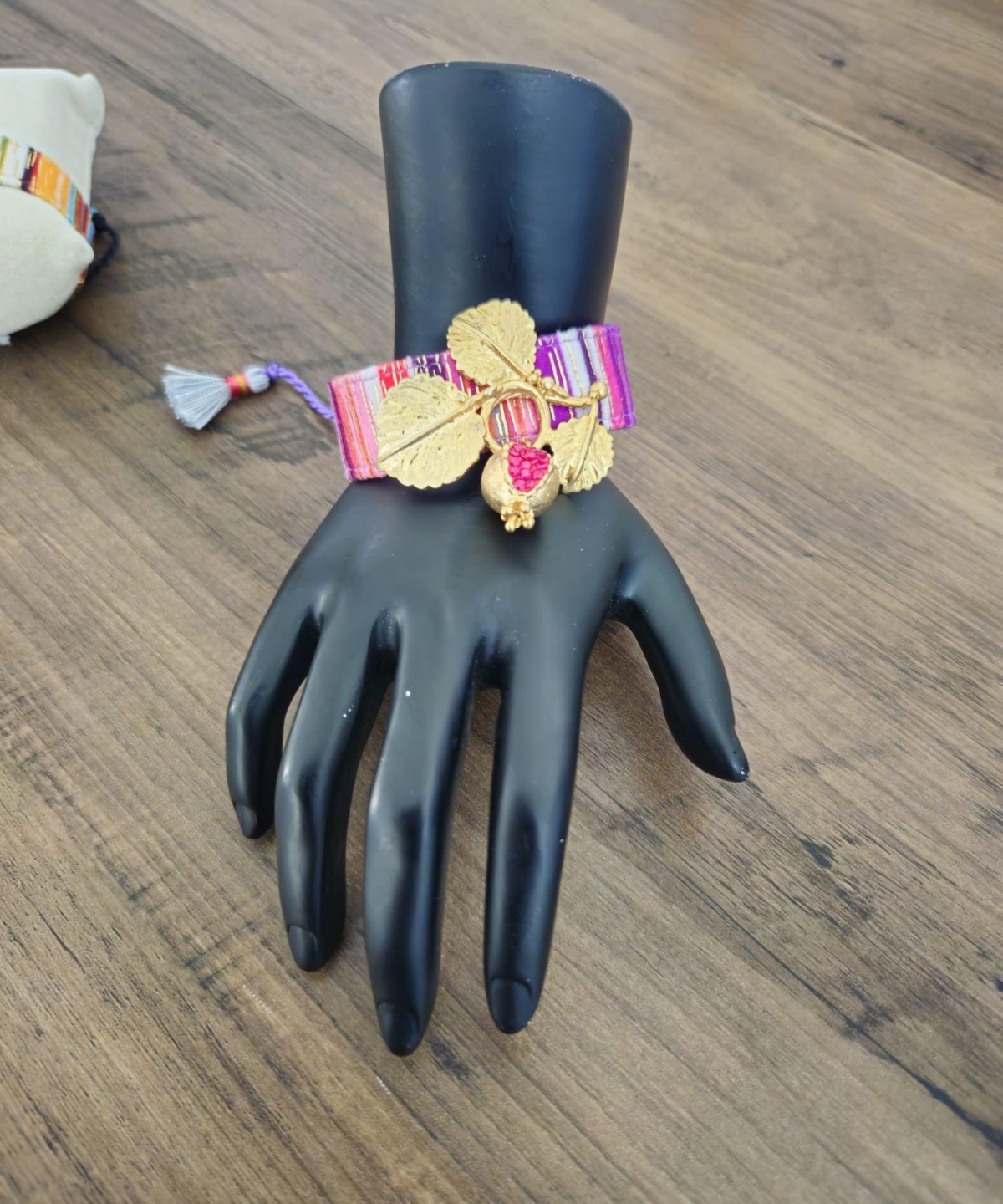For a more bohemian, casual look, the bracelet may use macrame techniques paired with metal or ceramic pomegranate charms.