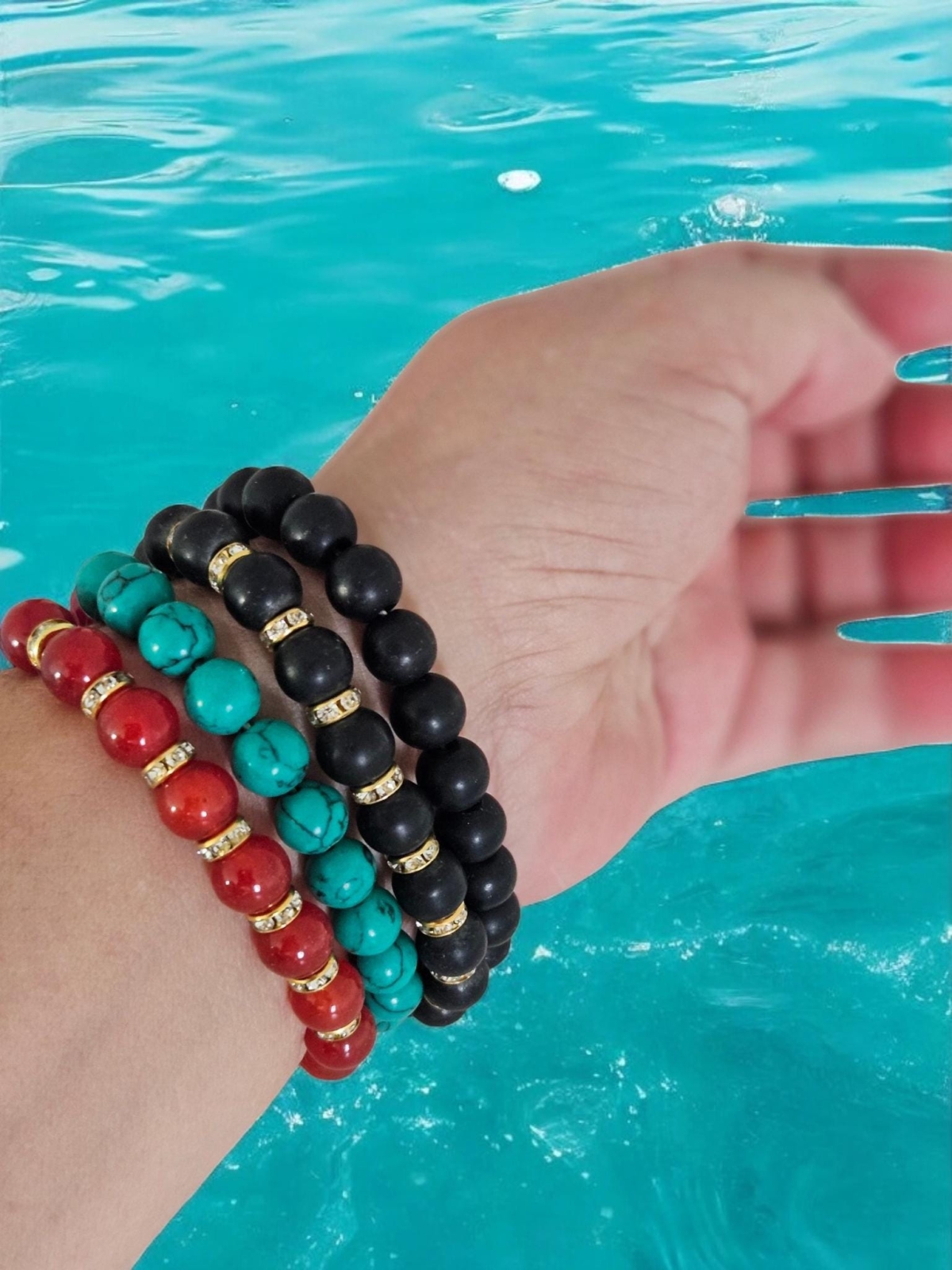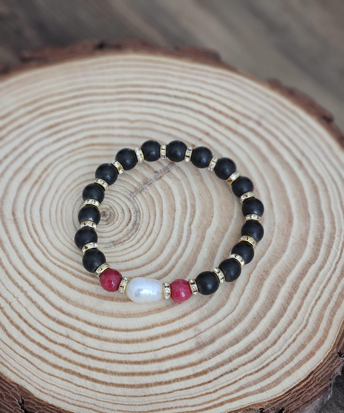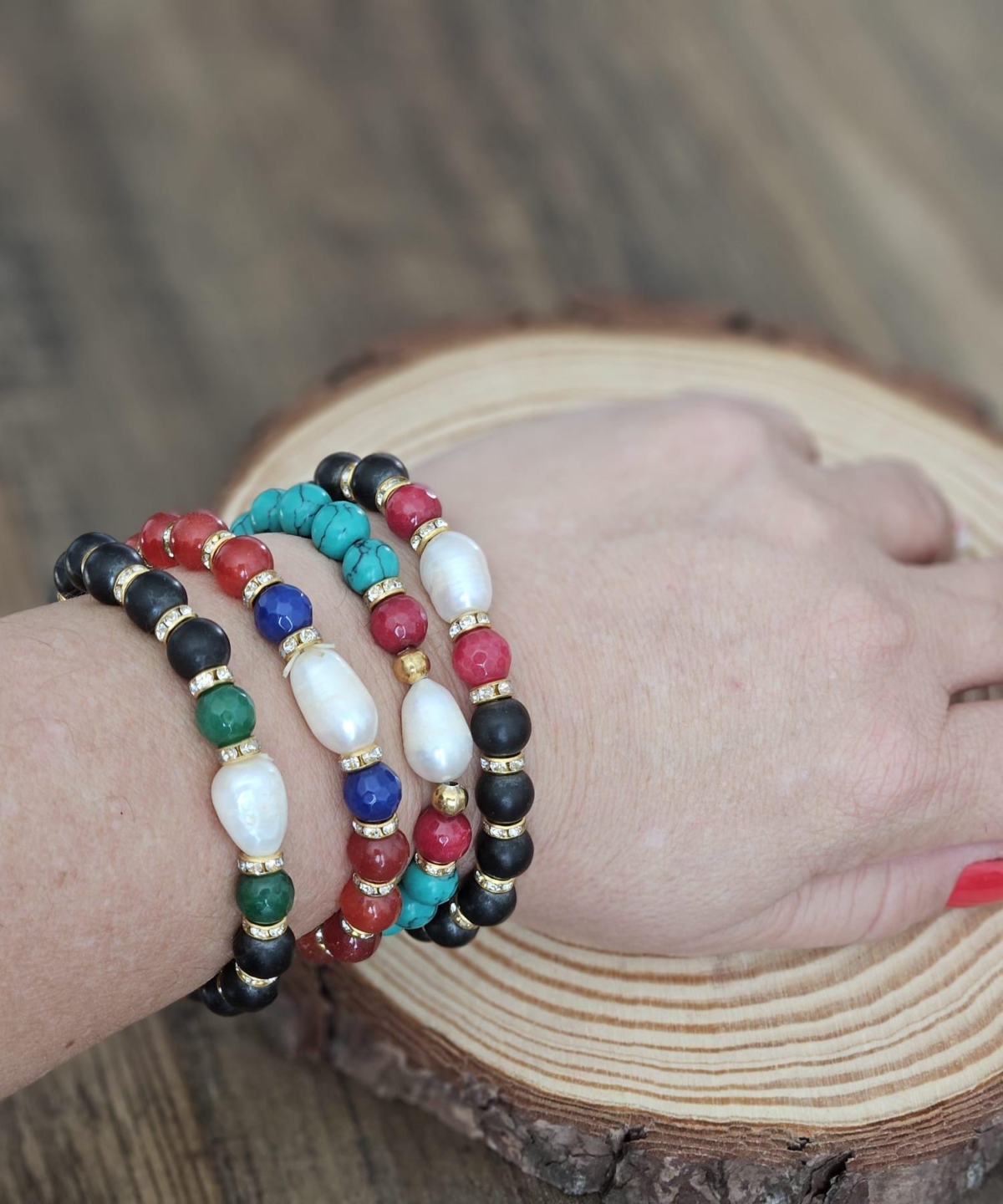 Mix and match hand made  bracelet with pearl finishing. Choose the color matching for you. The stone details are as below