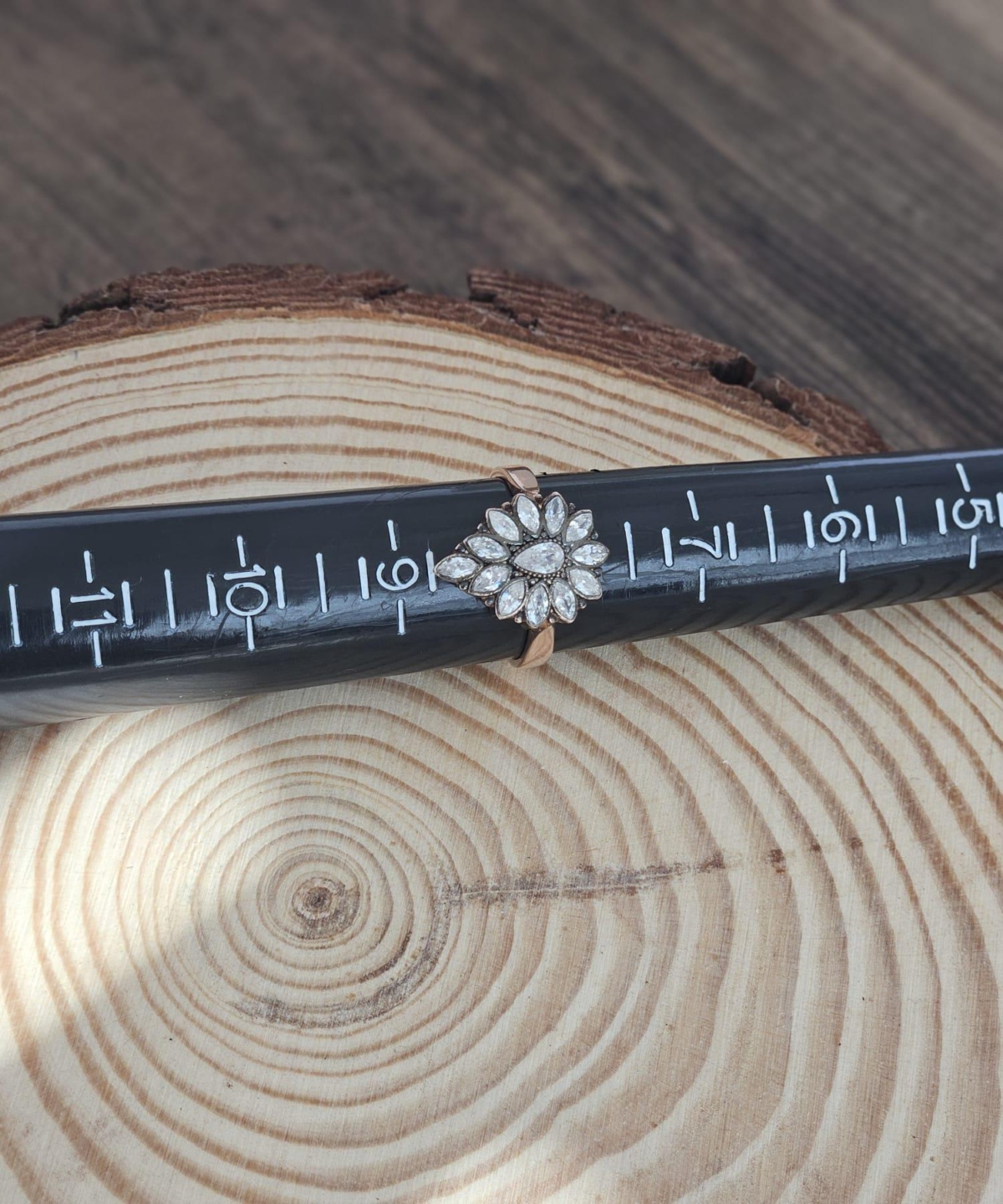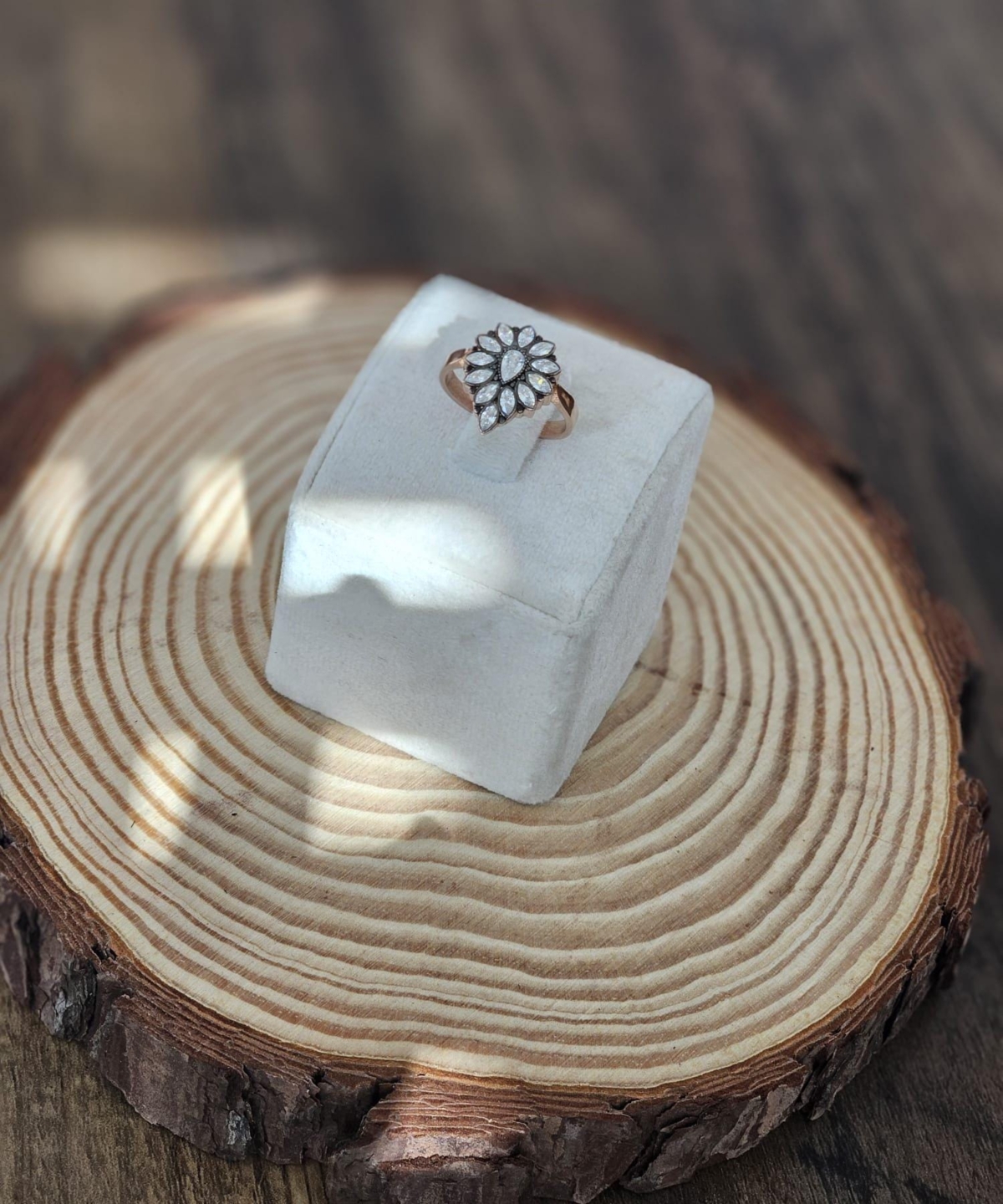 Rose color silver round ring assembled with zircon stones and rose color silver round pendant with white zircon makes it a perfect set of 2.